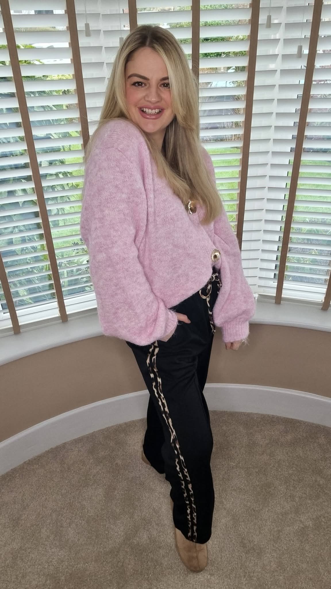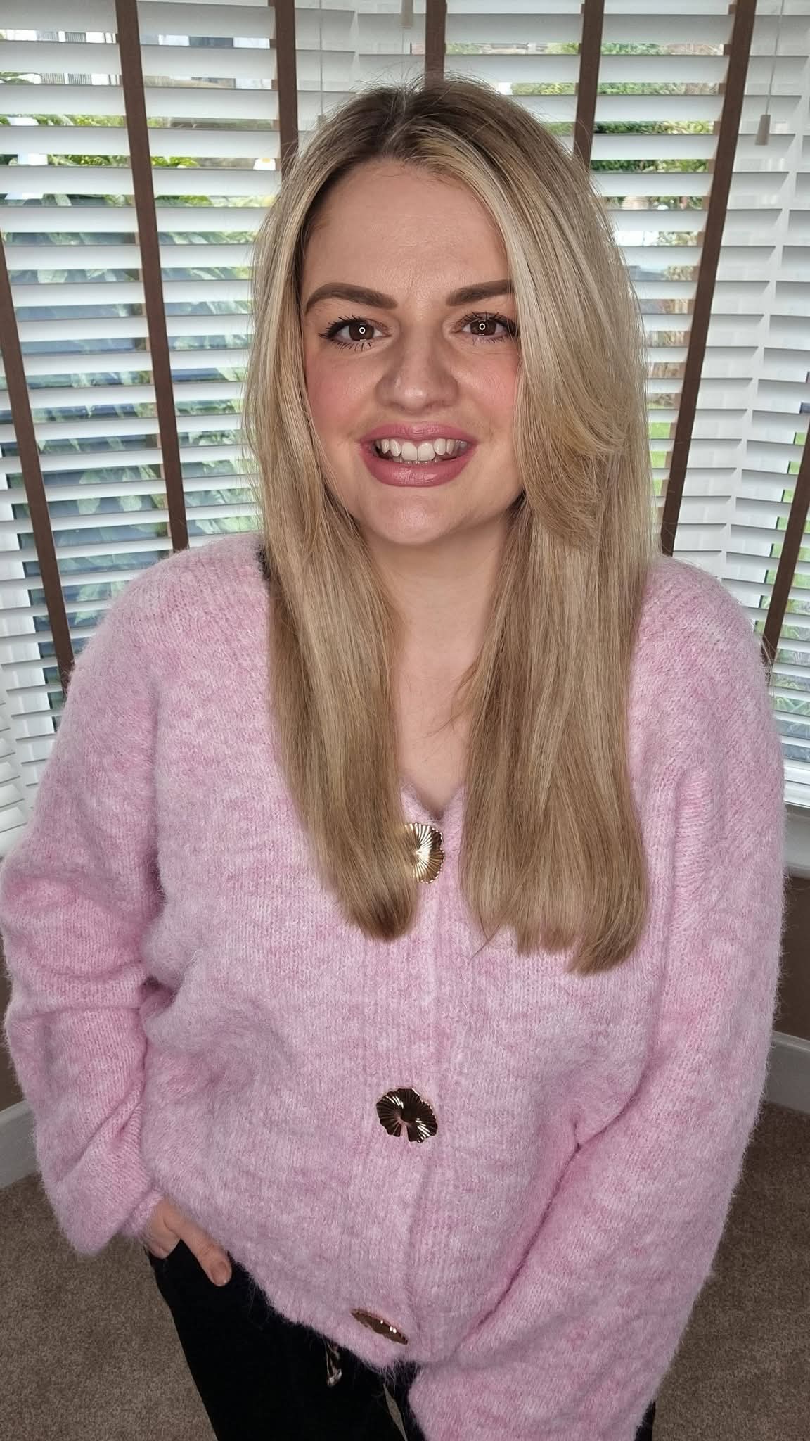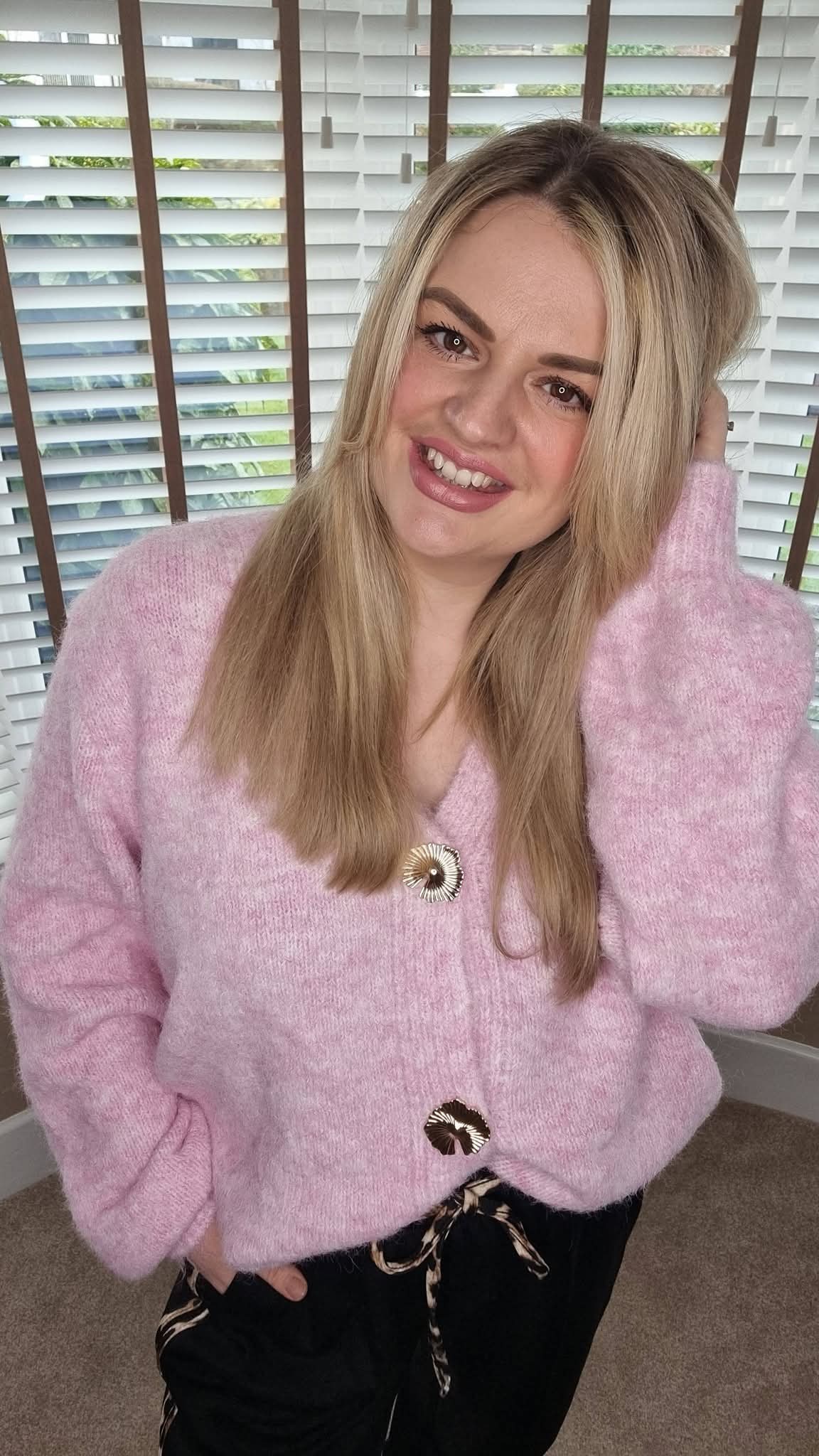 MOLLIE PINK FLUFFY GOLD BUTTON CARDIGAN